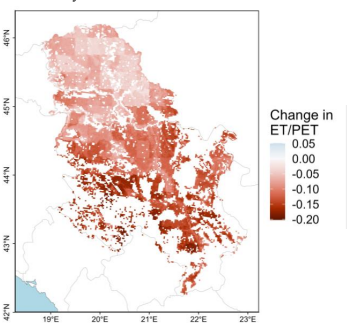 Over 80% of global agricultural lands are expected to experience increases in water scarcity by the mid-21st century, posing an extreme risk to global food security [3]. This will drive changes to agricultural systems, such as increased irrigation water use. In Serbia, recurring droughts could spur a race towards increasingly limited irrigation access. Forecasting future trends in water availability, stress (Fig. 1), and use is critical to formulate climate adaptation measures.