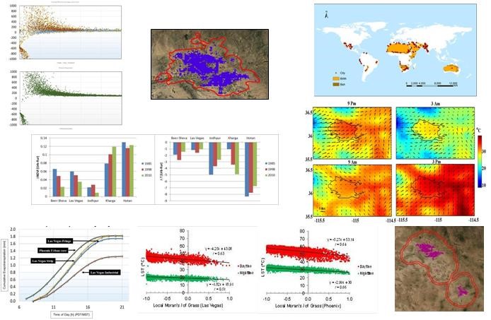 This interdisciplinary project examines how urban infrastructure and vegetation (land cover) is distributed in and around sub-tropical desert cities and how this affects both the local and regional climate. Five regions were chosen-Las Vegas, USA; Beer Sheva, Israel; Jodhpur, India; Kharga, Egypt; Hotan/Hetian, China-to allow for a comprehensive analysis.